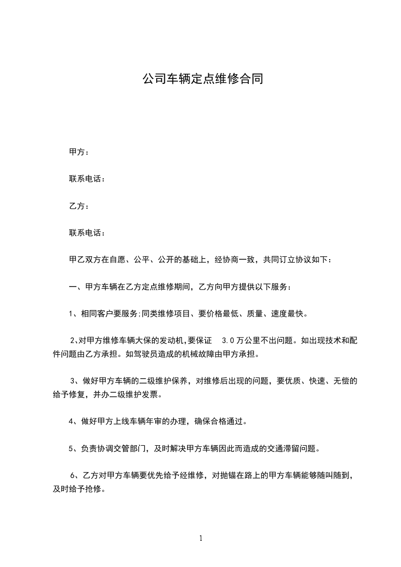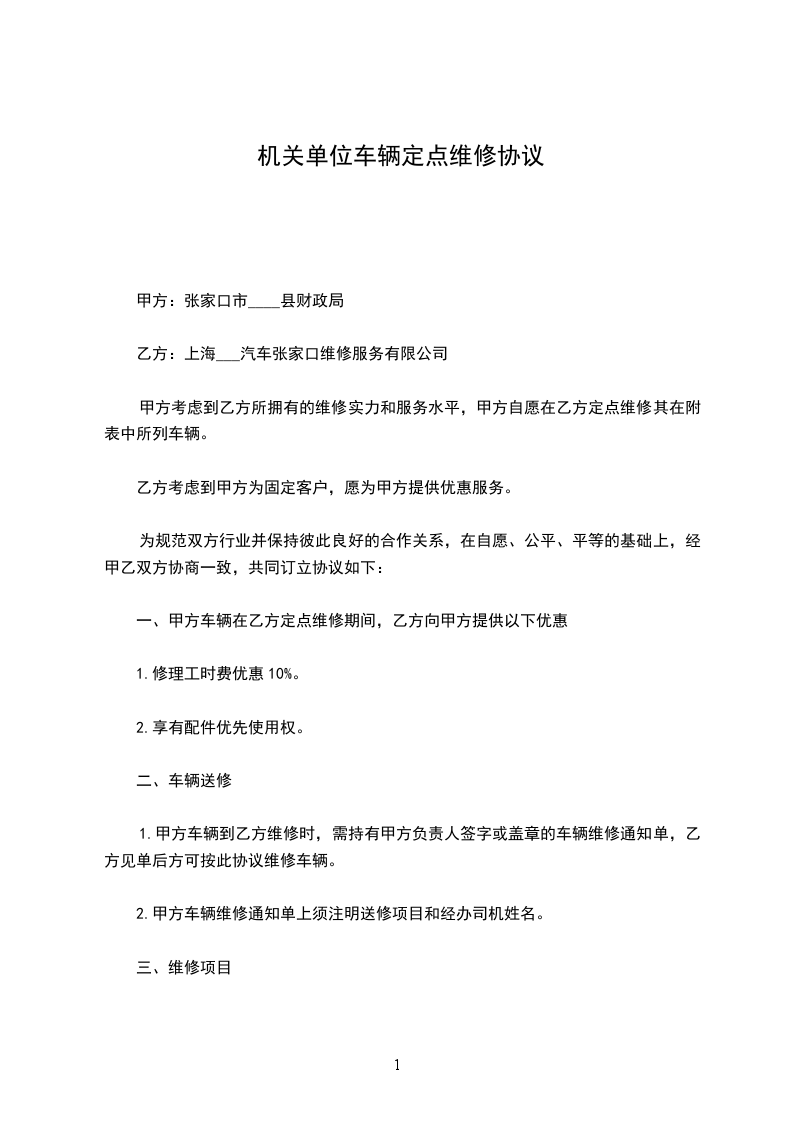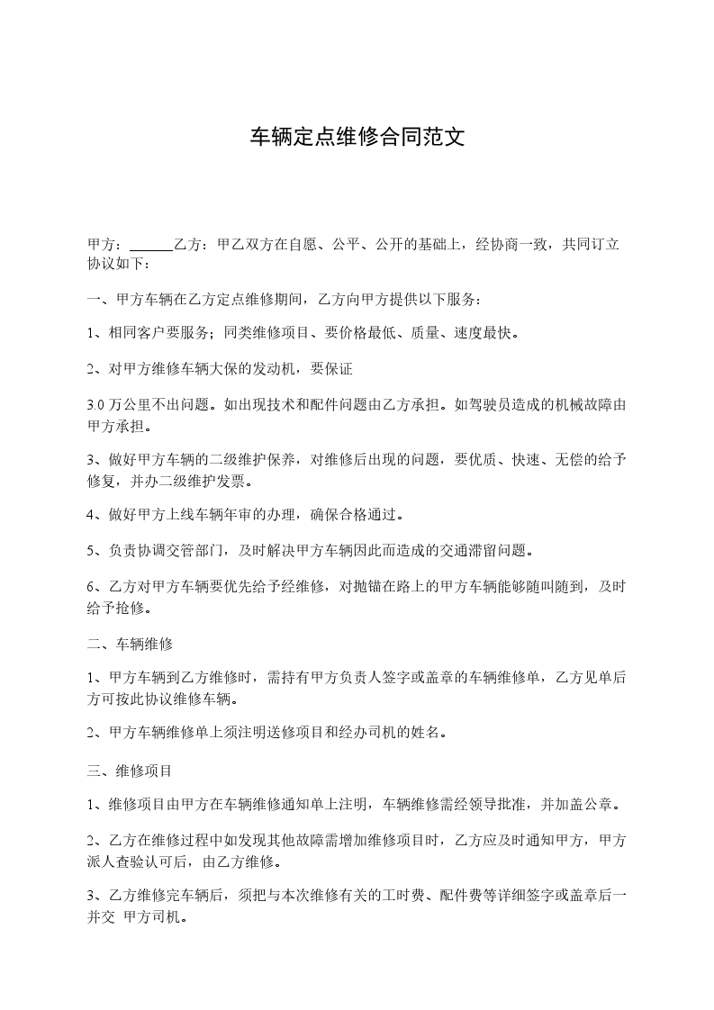甲方共有小车_______台,经甲乙双方协议,甲方同意将本单位_______台小车委托给乙方修理,为规范甲乙双方行为,签订合同如下: