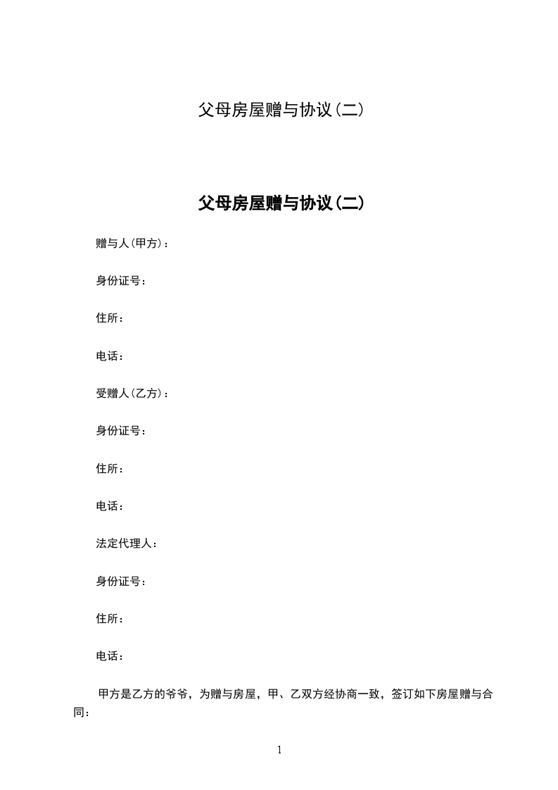 父母房屋赠与协议(二)