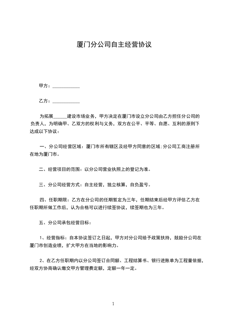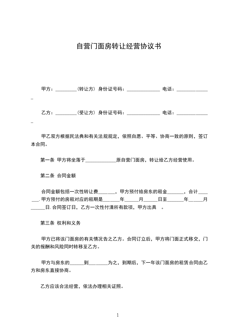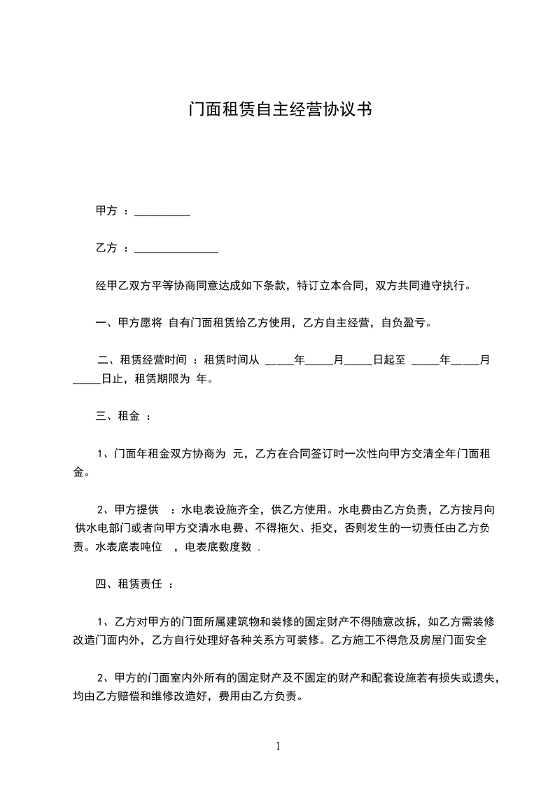 一、甲方愿将自有门面租赁给乙方使用,乙方自主经营,自负盈亏。