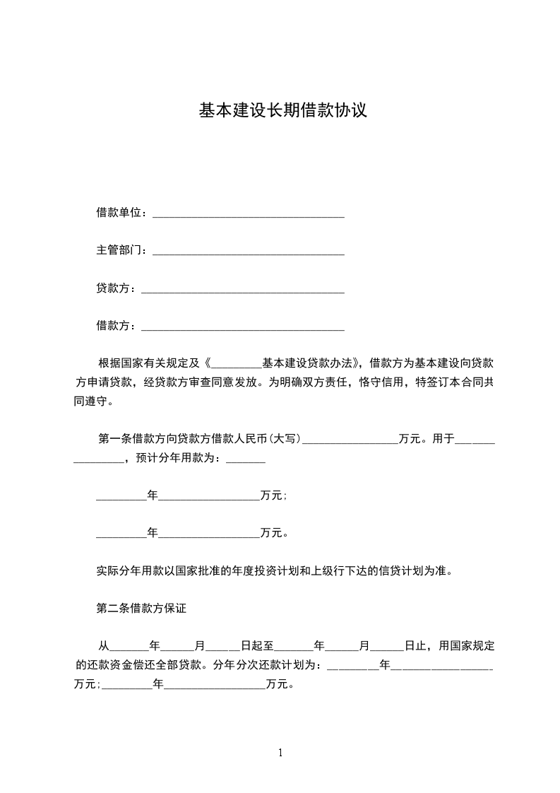根据国家规定,借款方为进行基本建设所需贷款,经贷款方审查发放。为明确双方责任,恪守信用,特签订本合同,共同遵守。
