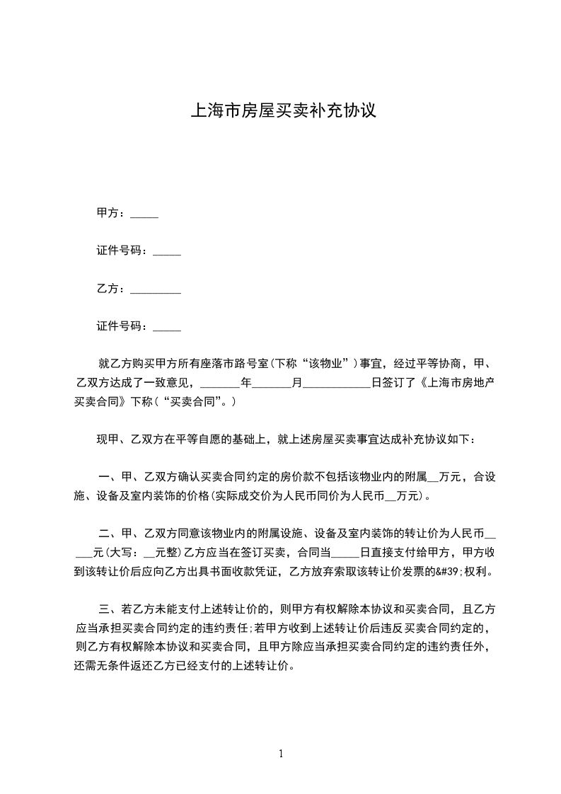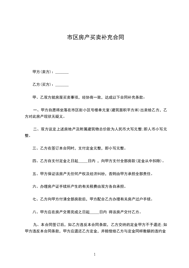 甲乙双方就下列房屋的买卖订立如下补充协议,以资双方共同遵守。