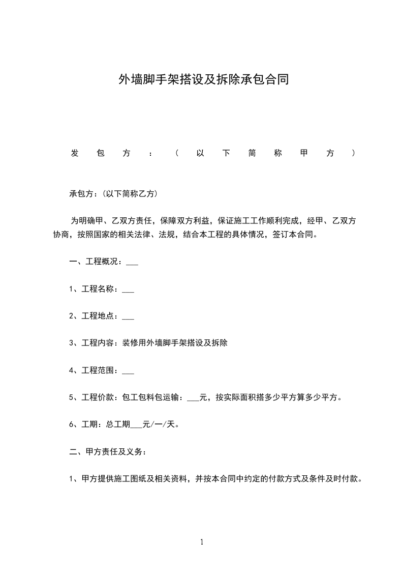2、脚手架拆除前,甲方付清乙方结算后的余款。