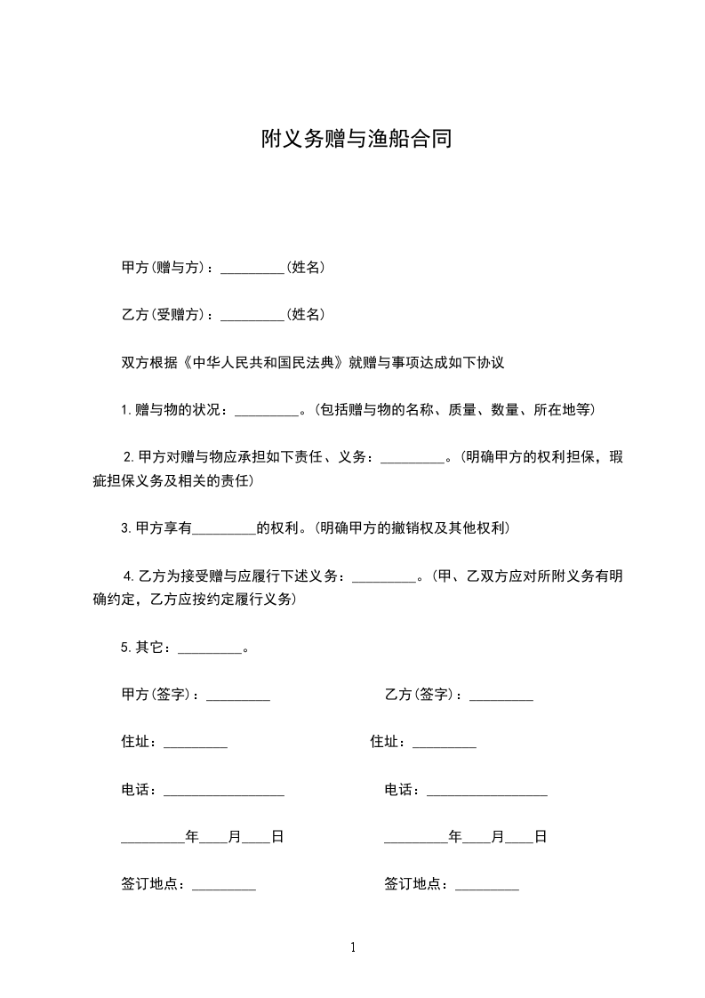 4.乙方为接受赠与应履行下述义务:_________。(甲、乙双方应对所附义务有明确约定,乙方应按约定履行义务)