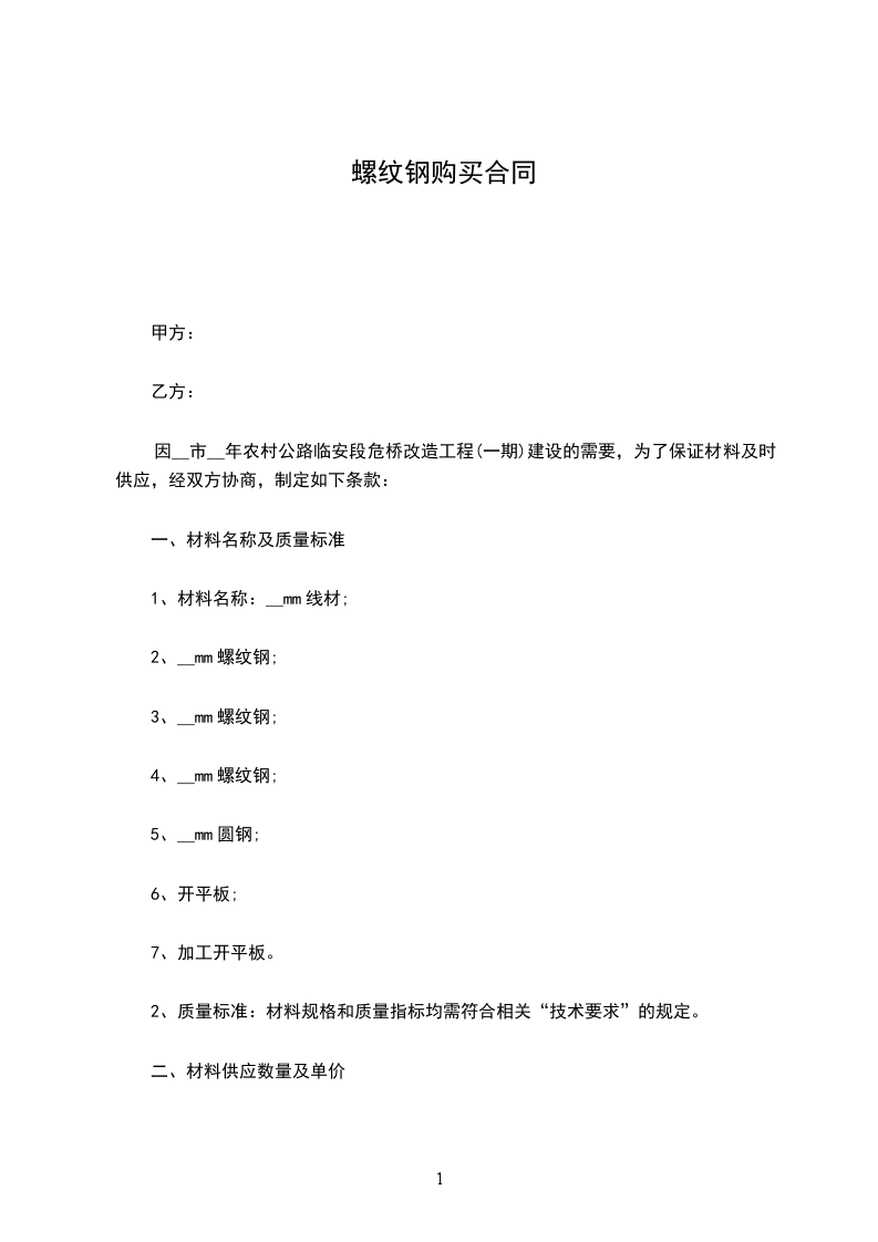2、__mm螺纹钢:__吨,单价:__。到场单价按__元/支计。总金额为__元人民币。