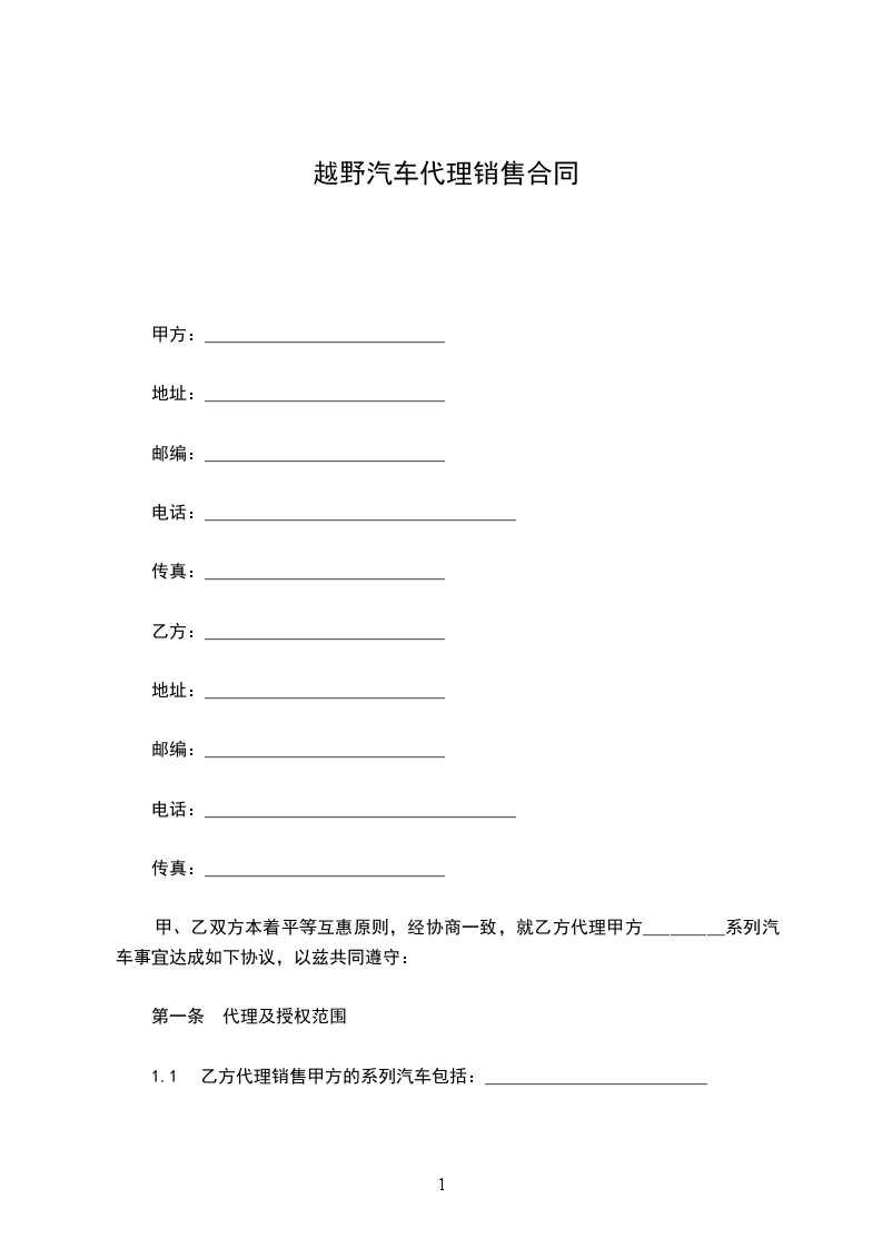 甲、乙双方本着平等互惠原则,经协商一致,就乙方代理甲方_________系列汽车事宜达成如下协议,以兹共同遵守: