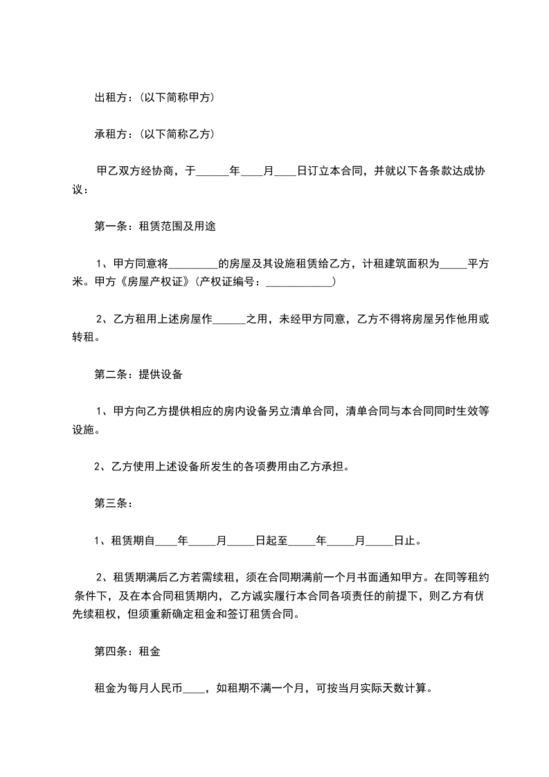 2、乙方租用上述房屋作______之用,未经甲方同意,乙方不得将房屋另作他用或转租。