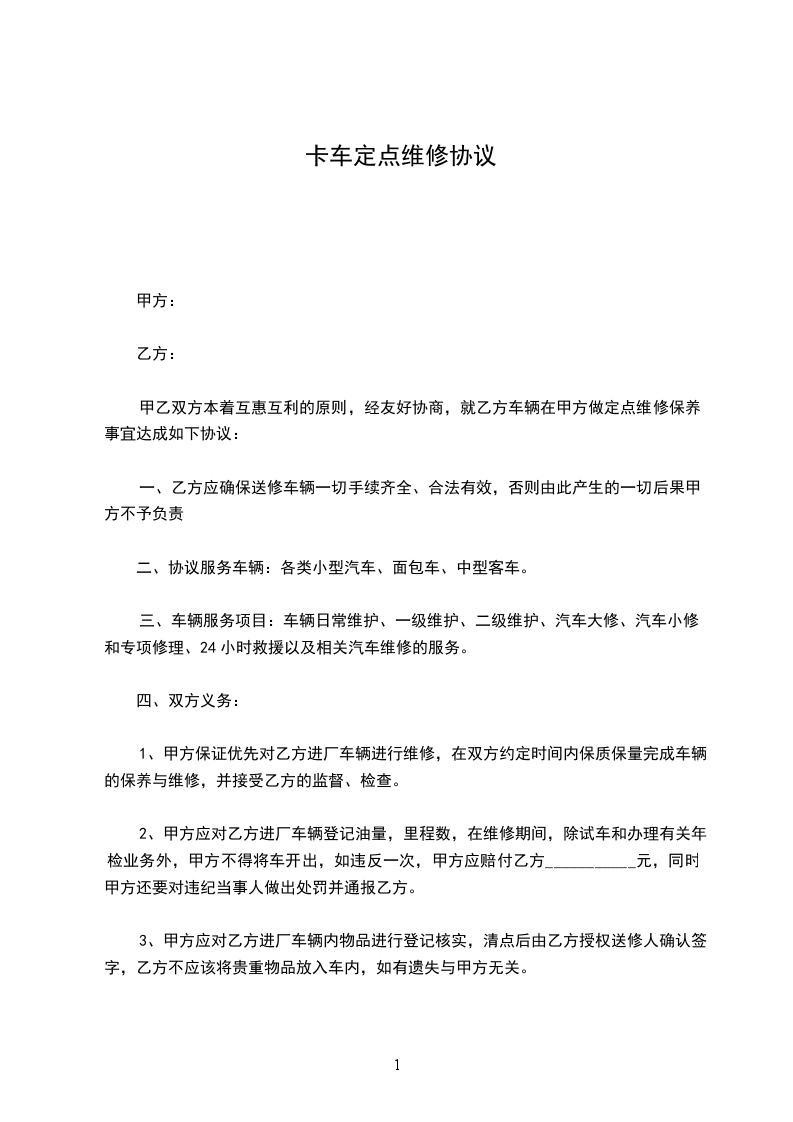 甲乙双方本着互惠互利的原则,经友好协商,就乙方车辆在甲方做定点维修保养事宜达成如下协议:
