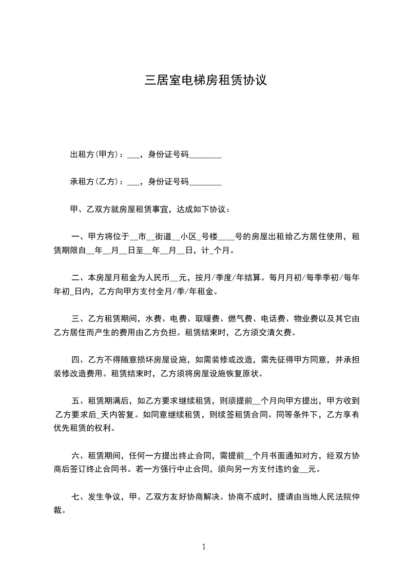 一、甲方将位于__市__街道__小区_号楼____号的房屋出租给乙方居住使用,租赁期限自__年__月__日至__年__月__日,计_个月。