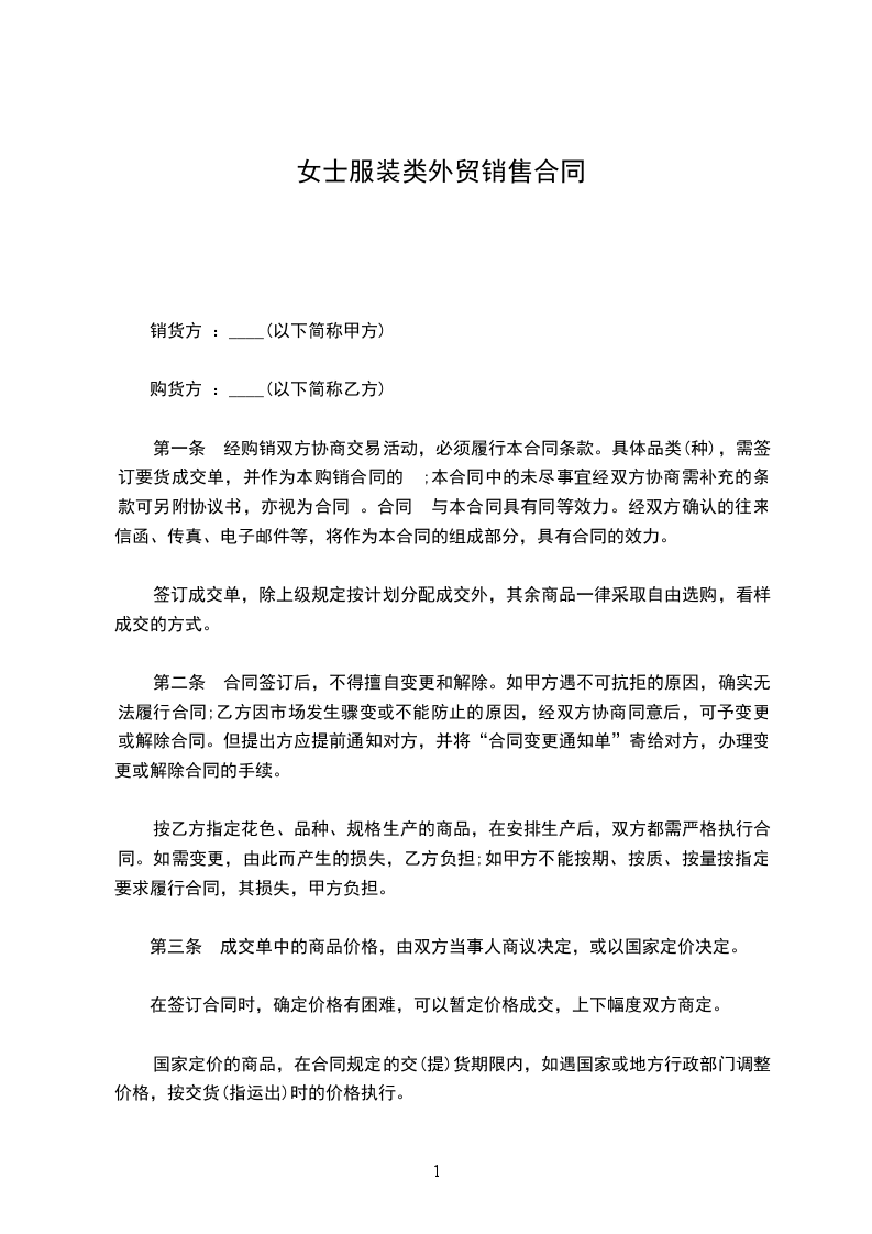 三、乙方自行看样定货,发货后不作退换货处理。如有质量问题,货到三天内通知甲方,并发回给甲方鉴定,过期不再处理。