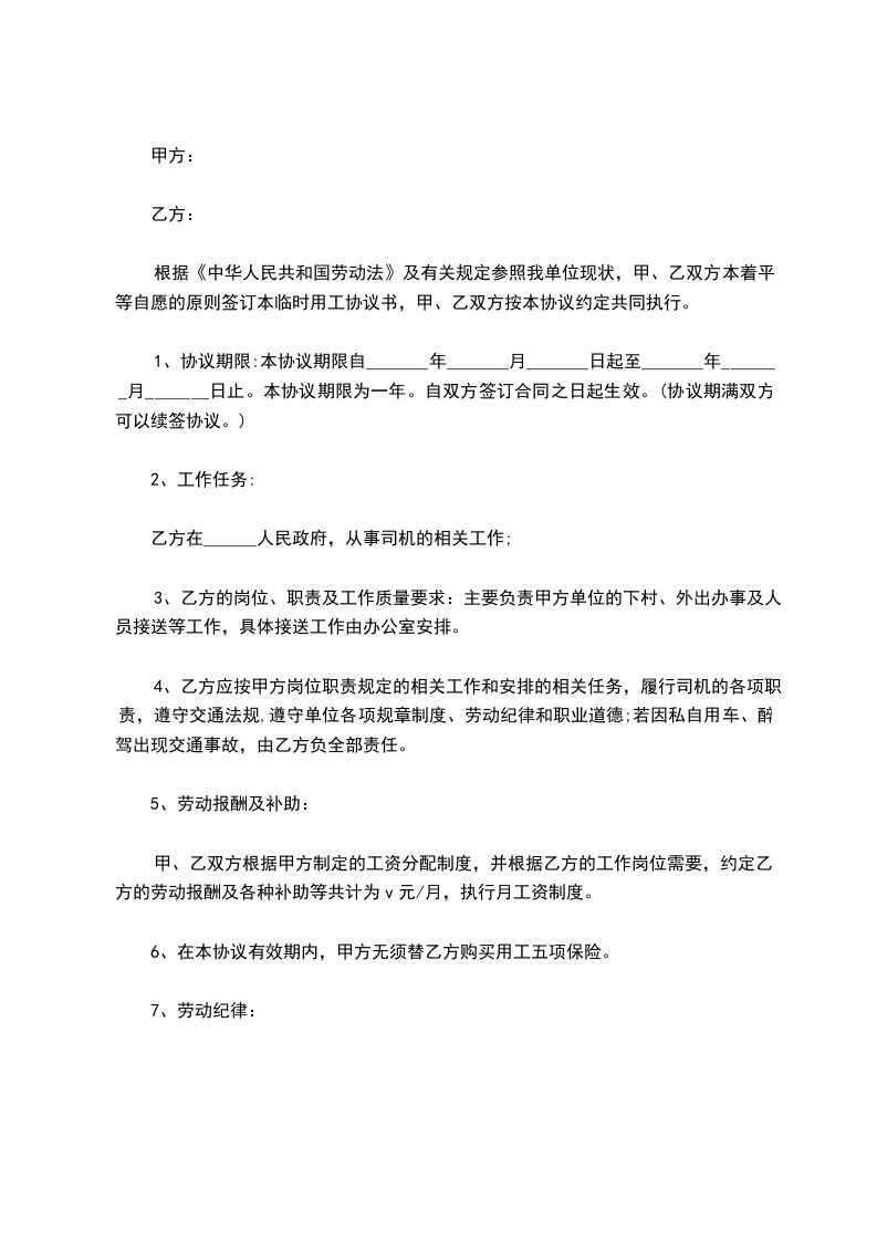乙方在______人民政府,从事司机的相关工作;