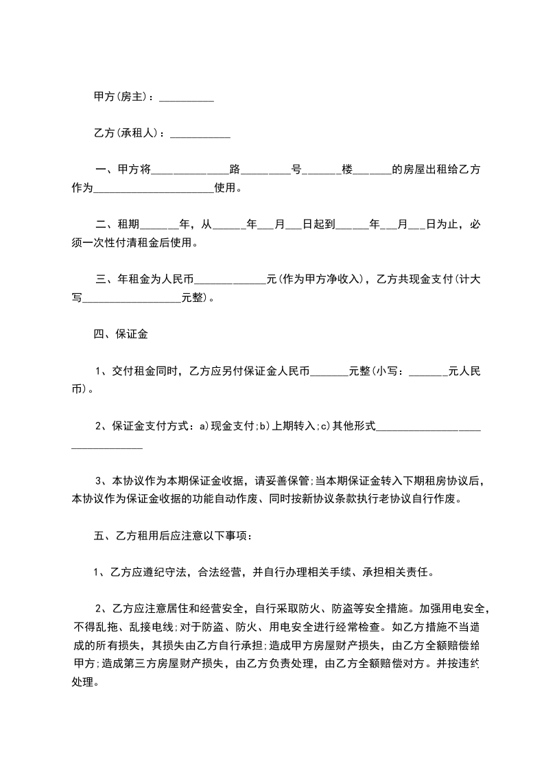 3、本协议作为本期保证金收据,请妥善保管;当本期保证金转入下期租房协议后,本协议作为保证金收据的功能自动作废、同时按新协议条款执行老协议自行作废。