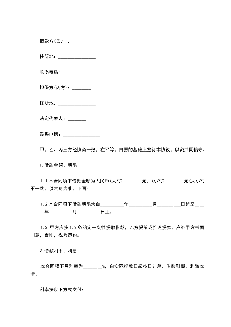 4.1本合同项下借款的担保方式为丙方承担连带责任的保证担保。