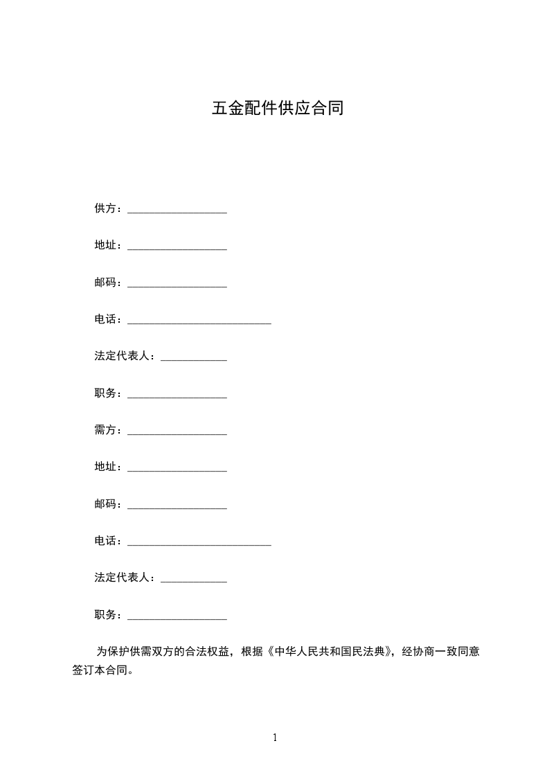 为保护供需双方的合法权益,根据《中华人民共和国民法典》,经协商一致同意签订本合同。