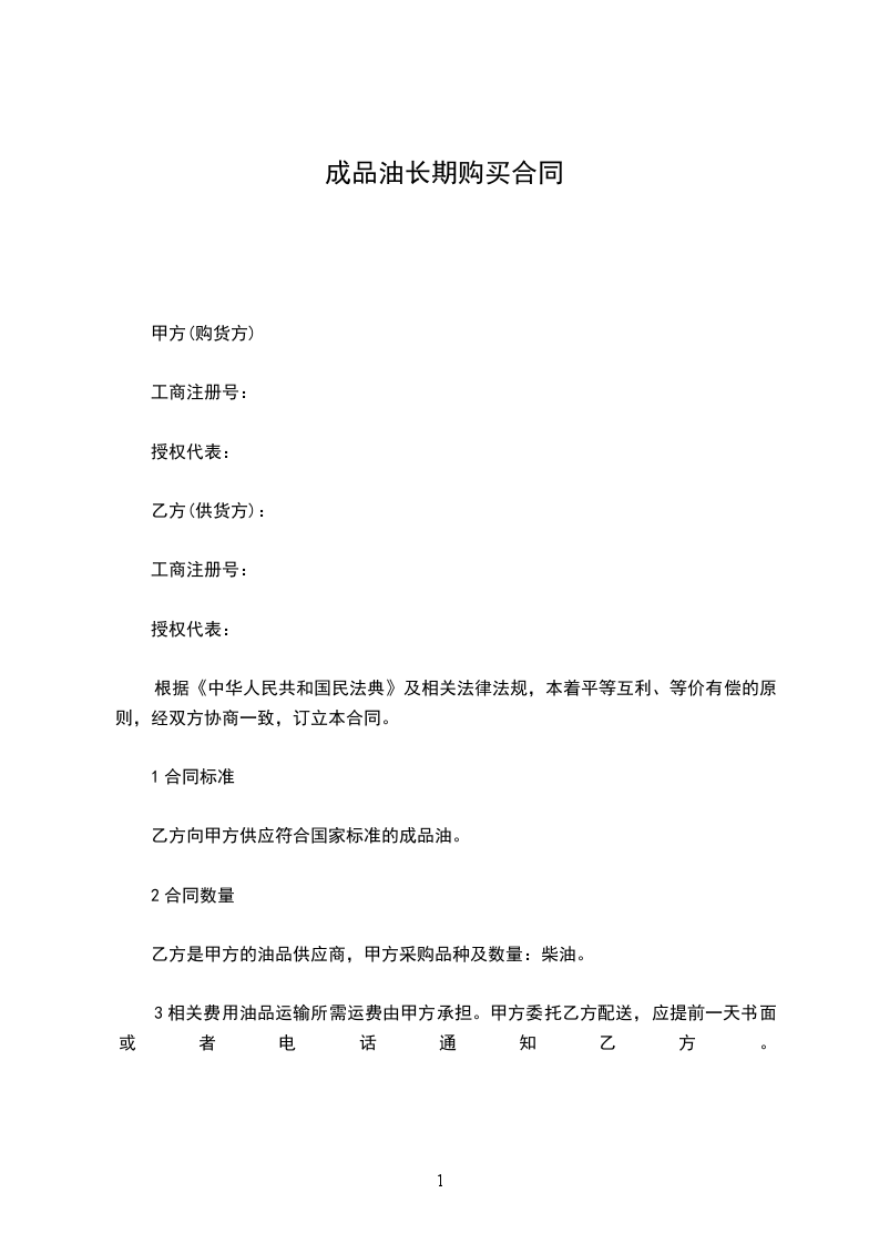 乙方向甲方供应符合国家标准的成品油。