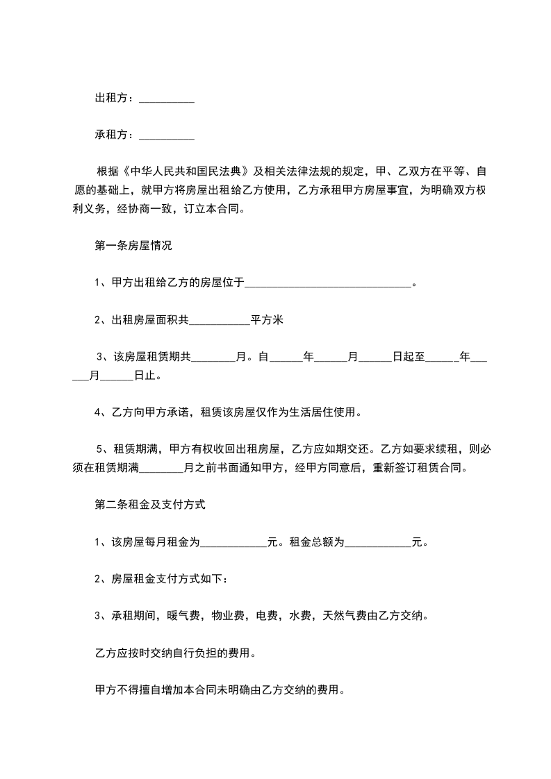 经双方协商甲方将位于______________________________房屋出租给乙方居住使用。