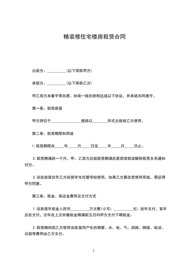 乙方交保证金________元给甲方,乙方退房时交清水,电,气,光纤和物业管理等费用及屋内设施家具、家电无损坏,下水管道,厕所无堵漏。甲方如数退还保证金。