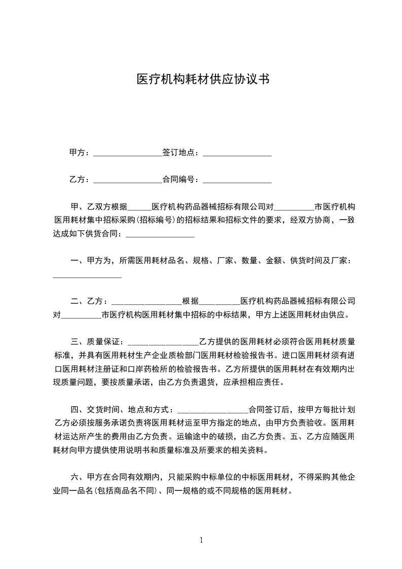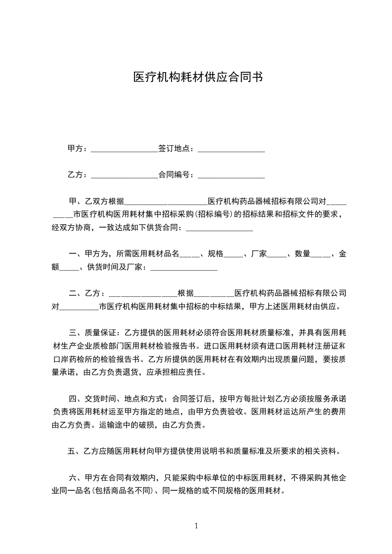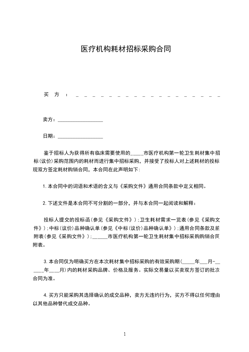 鉴于招标人为获得所有临床需要使用的_____市医疗机构第一轮卫生耗材集中招标(议价)采购范围内的耗材而进行集中招标采购,并接受了投标人对上述耗材的投标。现双方签定耗材购销合同,本合同在此声明如下: