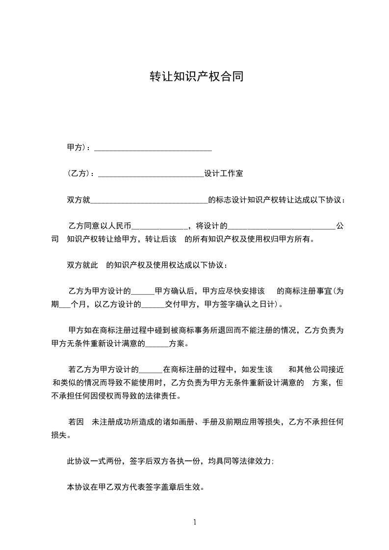 乙方同意以人民币______________,将设计的___________________________公司logo知识产权转让给甲方,