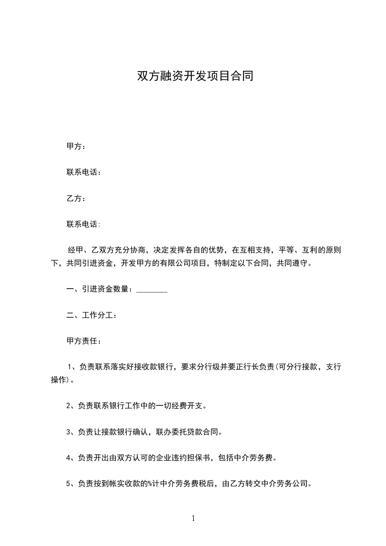 经甲、乙双方充分协商,决定发挥各自的优势,在互相支持,平等、互利的原则下,共同引进资金,开发甲方的有限公司项目,特制定以下合同,共同遵守。