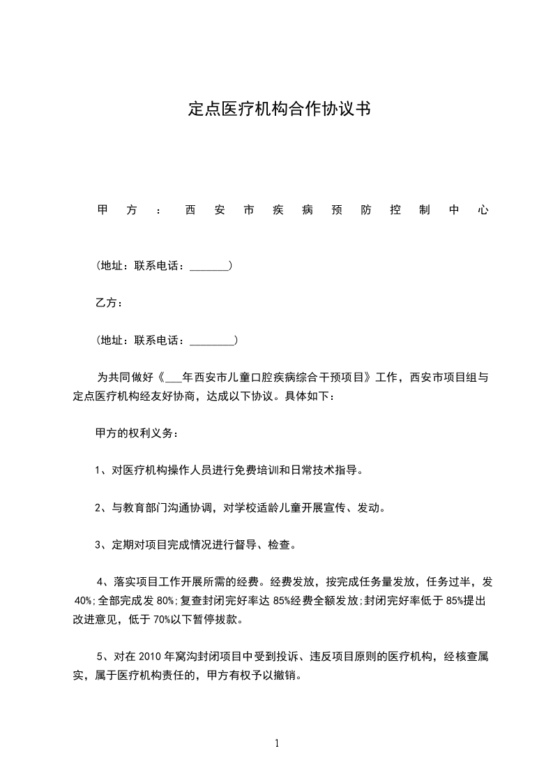 为共同做好《___年西安市儿童口腔疾病综合干预项目》工作,西安市项目组与定点医疗机构经友好协商,达成以下协议。具体如下: