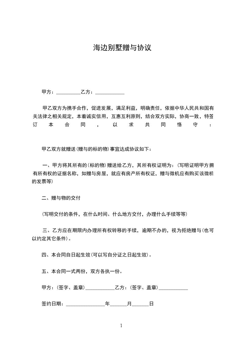 甲方(赠与方):_________(姓名)