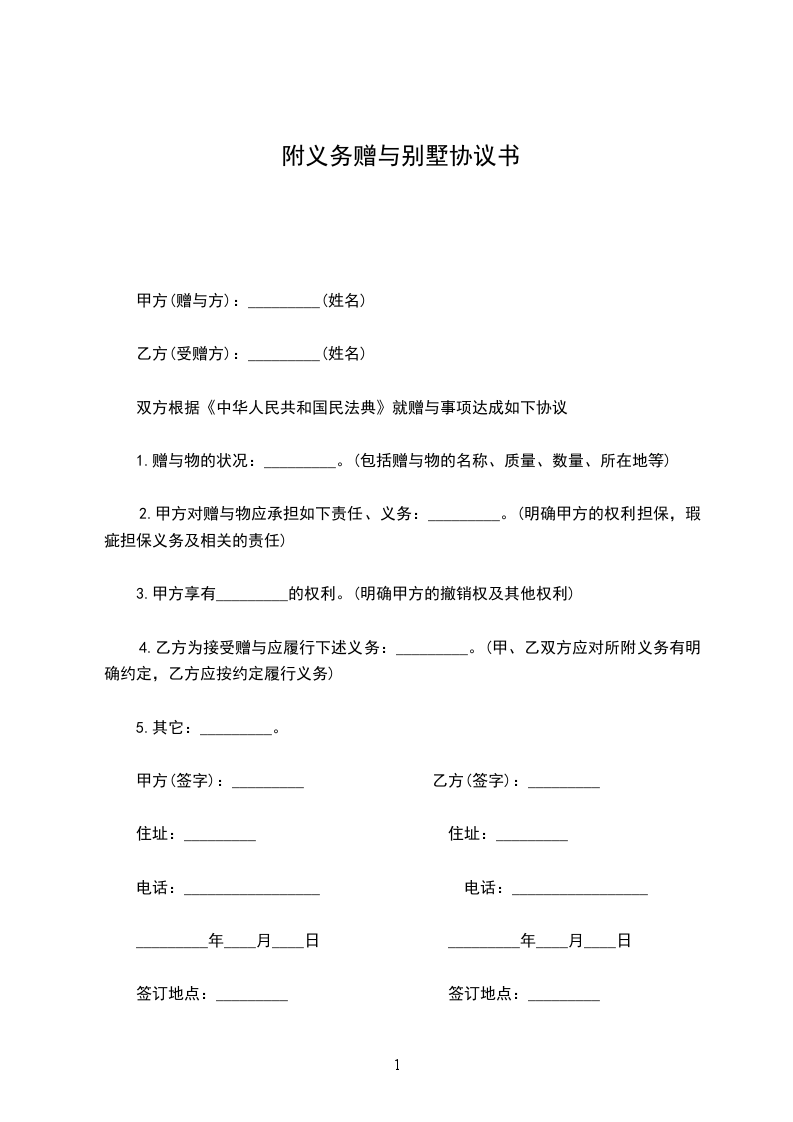 4.乙方为接受赠与应履行下述义务:_________。(甲、乙双方应对所附义务有明确约定,乙方应按约定履行义务)