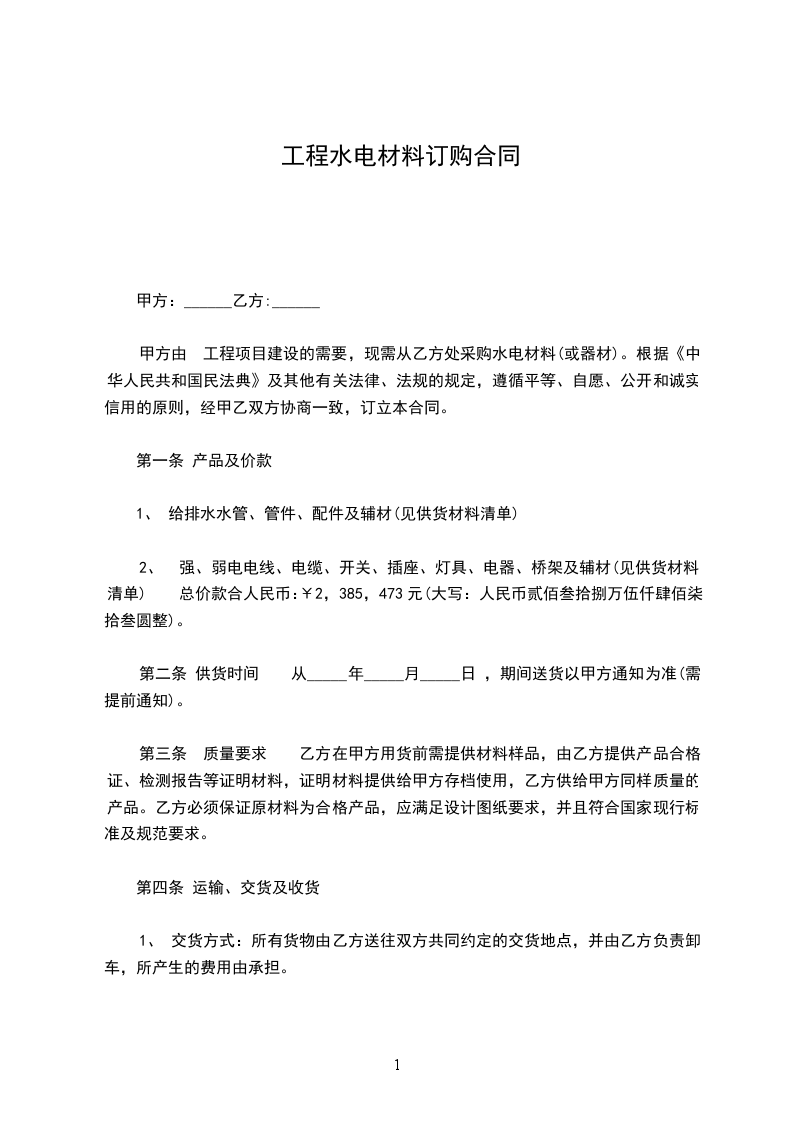 6.3本合同价款为固定价格合同。材料采购总价包干,如因甲方要求更改造成材料采购的增减,则纳入最终结算,其它原因甲方一律不予增减采购量及价格。