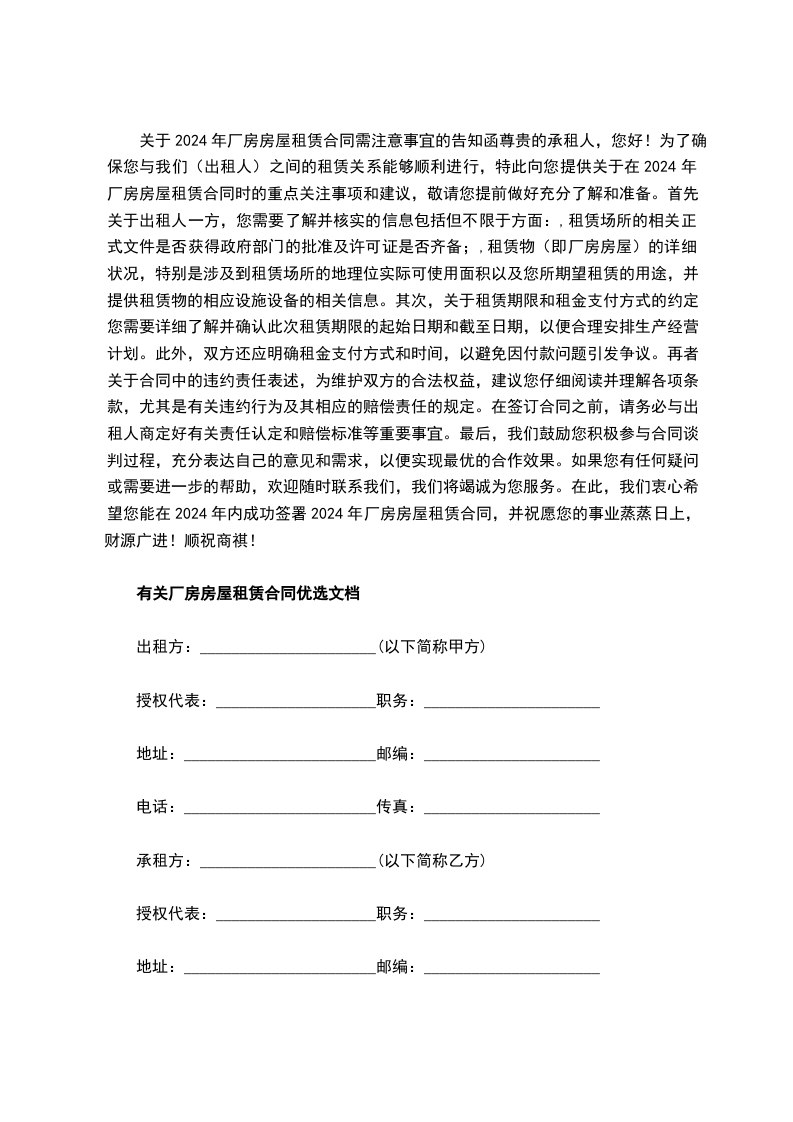 2、厂房租赁自_______年_______月_______日起,至_______年_______月_______日止。租赁期_______年。