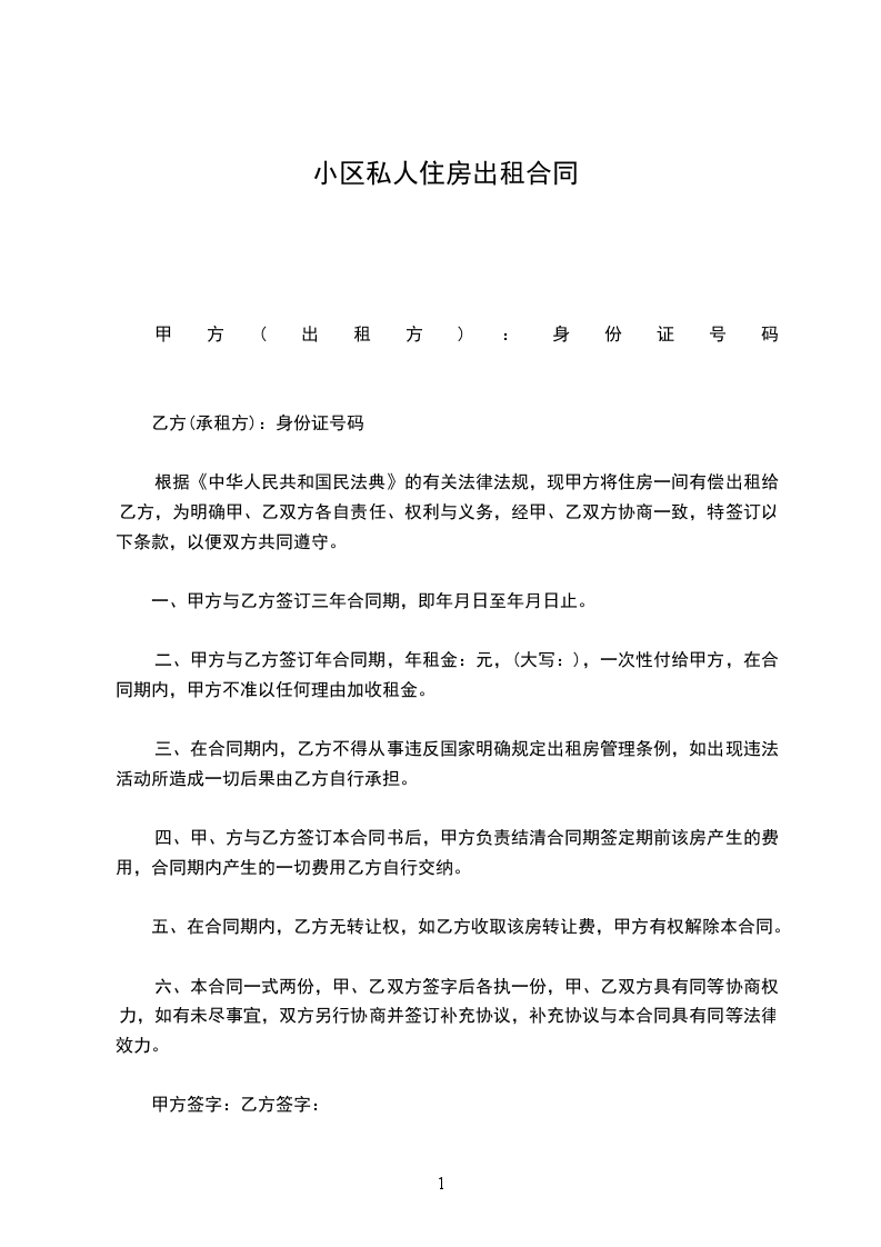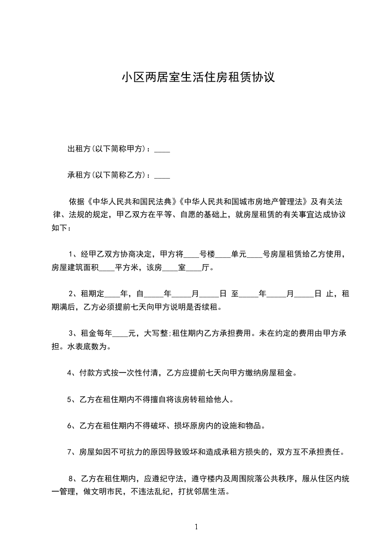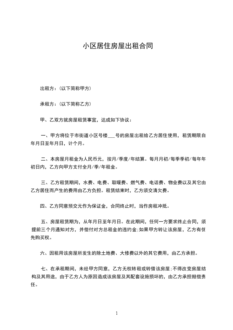 一、甲方将南宁市__________区______________路_________号_____楼_____号房屋出租给乙方作为生活住房使用。