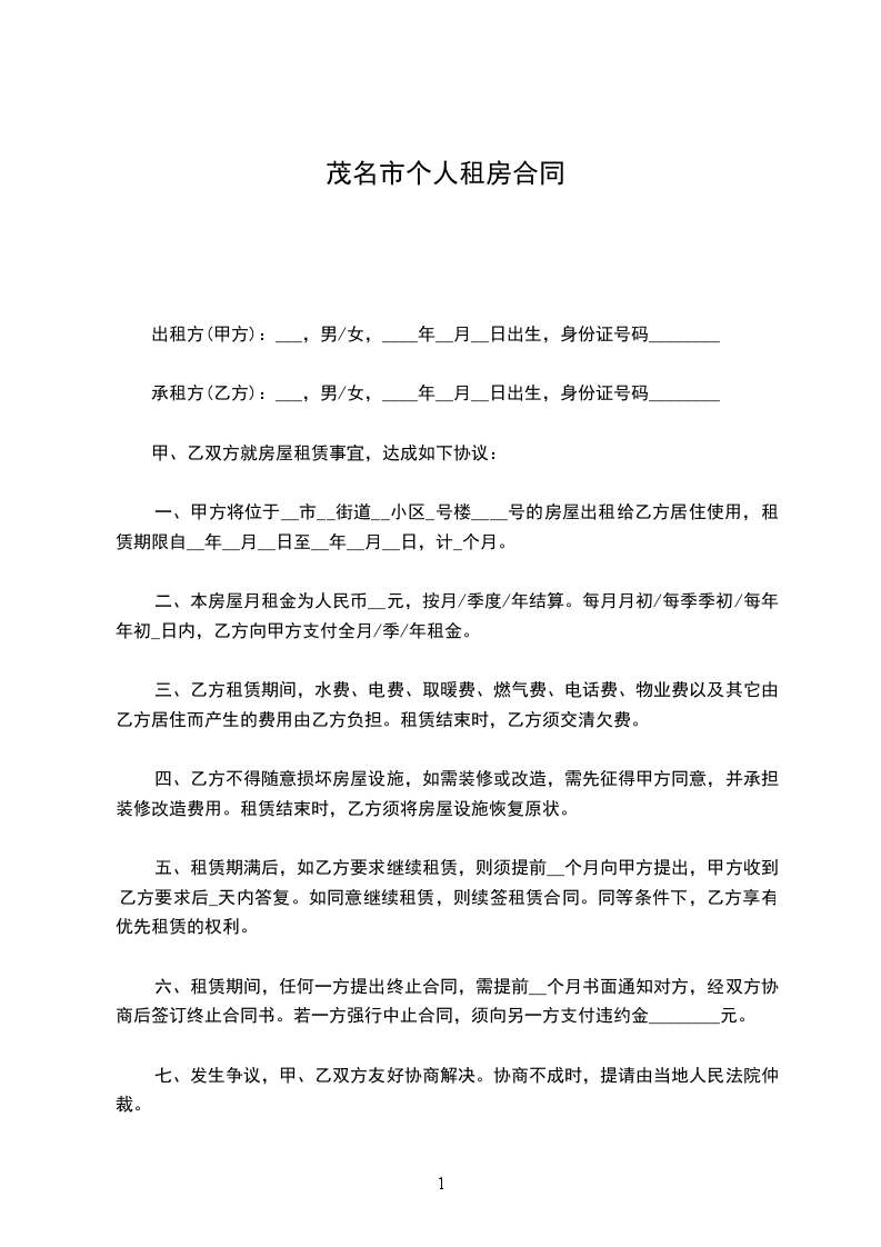承租方(乙方):___,男/女,____年__月__日出生,身份证号码________
