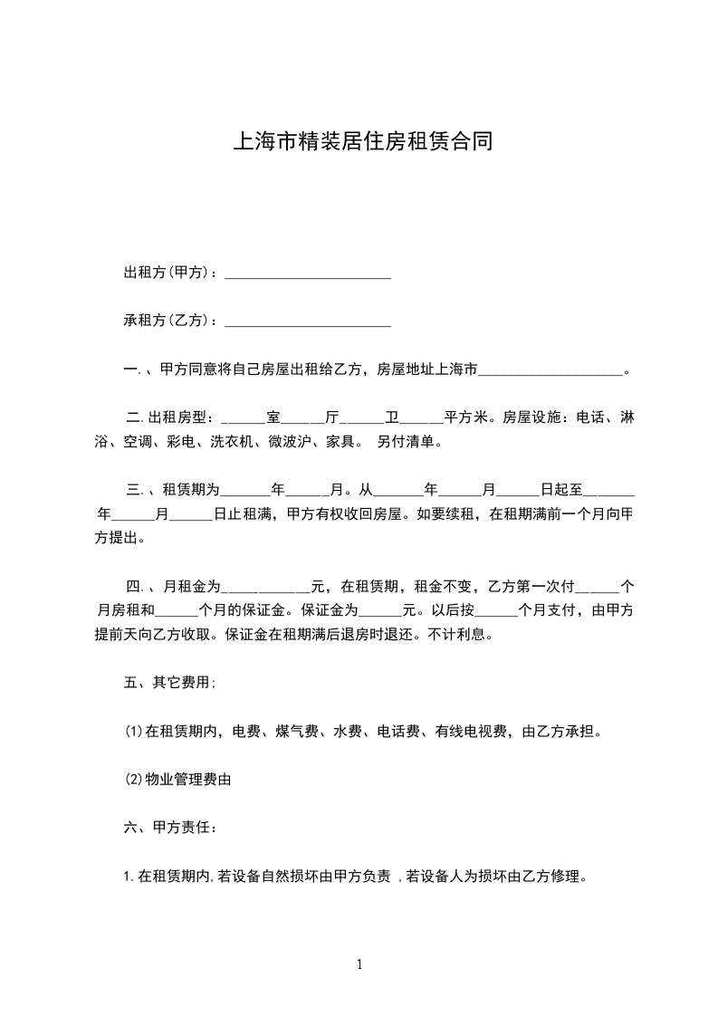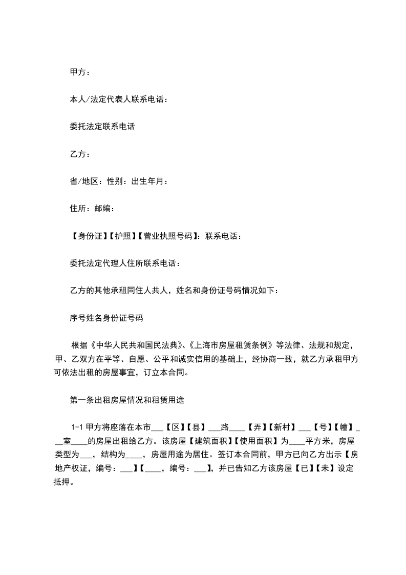 一、甲方将位于________市________街道________小区________号楼________号的房屋出租给乙方居住使用,租赁期限自________年________月________日至________年________月________日,计______个月。