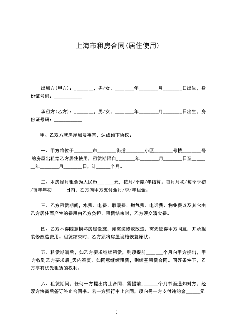 出租方(甲方):________,男/女,________年________月________日出生,身份证号码:____________