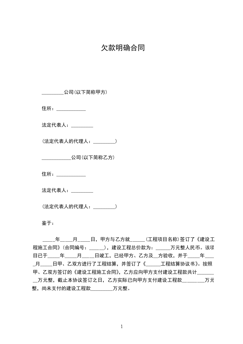第一条甲、乙双方在此确认:乙方应向甲方支付建设工程款共计______万元整,截止本协议签订之日,乙方实际已向甲方支付建设工程款______万元整,尚未支付的建设工程款______万元整。