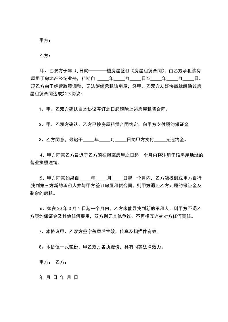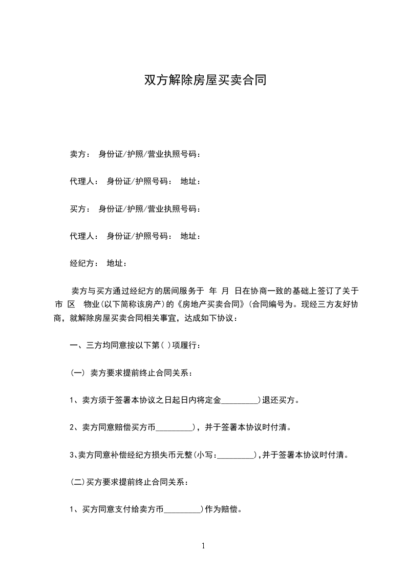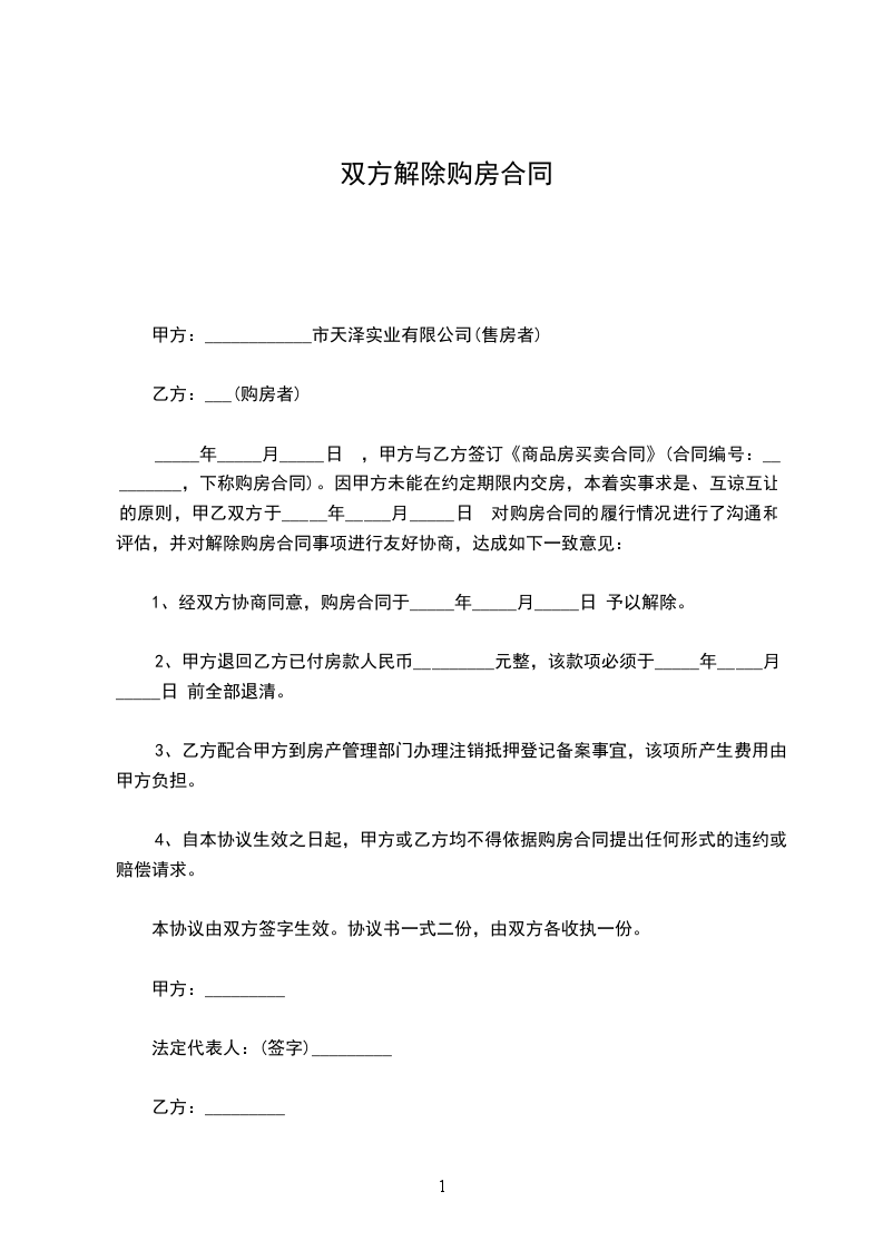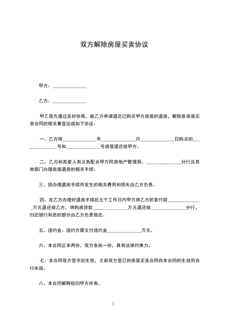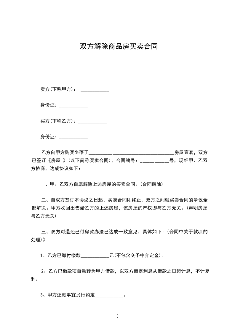 1、经双方协商同意,购房合同于_____年_____月_____日 予以解除。