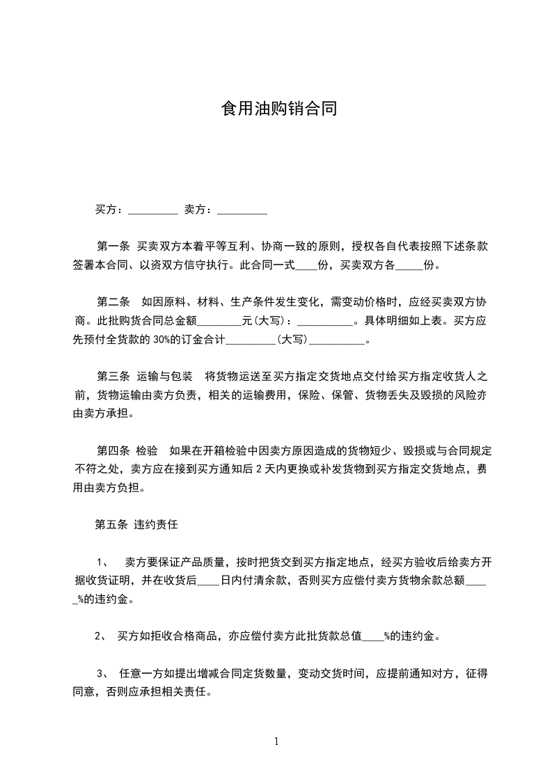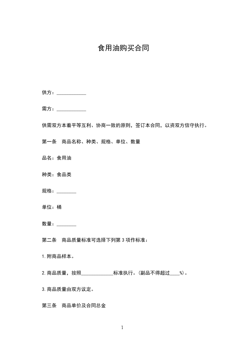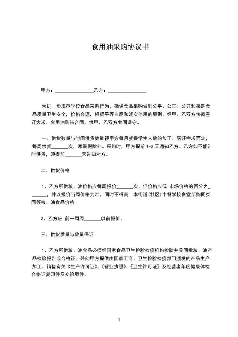2.商品质量,按照_____________标准执行。(副品不得超过____%)。