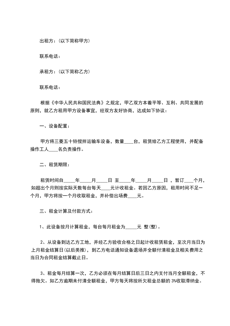 根据《中华人民共和国民法典》之规定,甲乙双方本着平等、互利、共同发展的原则,就乙方租用甲方设备事宜,经双方友好协商,达成如下协议: