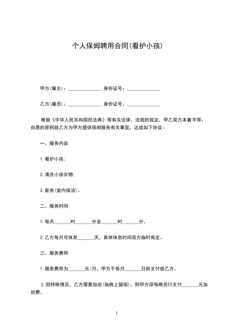 4.为保证甲方的家庭成员人身安全和财产安全,乙方的身份证自愿交由甲方保管,乙方工作期限满后,甲方应主动交还身份证。未经过甲方允许,乙方不能带外人到家中参观、住宿。