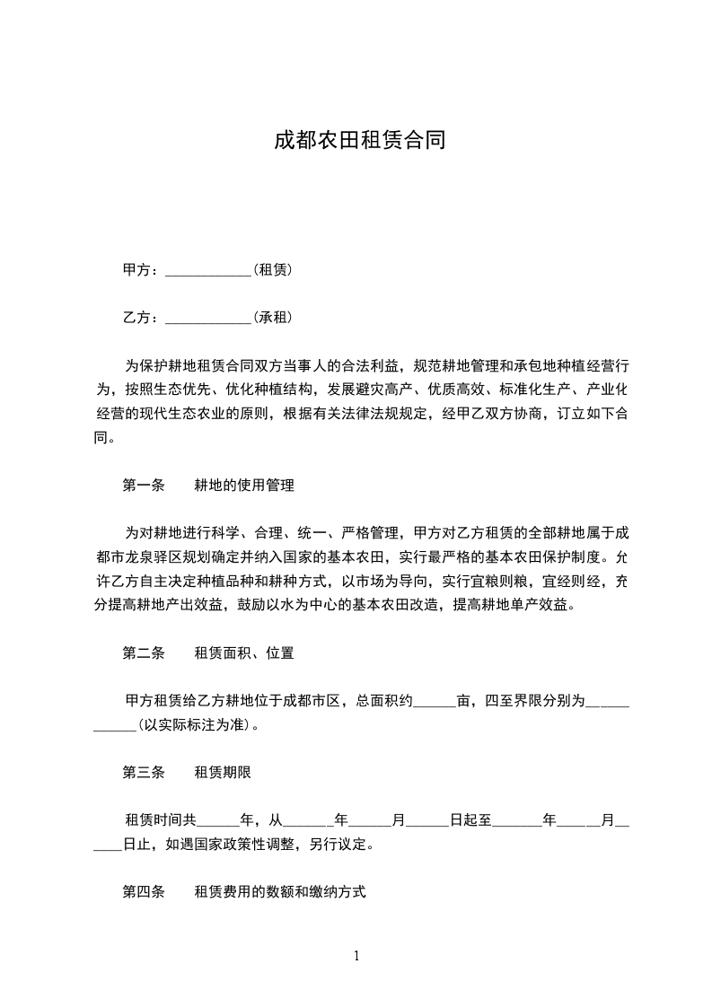 为保护耕地租赁合同双方当事人的合法利益,规范耕地管理和承包地种植经营行为,按照生态优先、优化种植结构,发展避灾高产、优质高效、标准化生产、产业化经营的现代生态农业的原则,根据有关法律法规规定,经甲乙双方协商,订立如下合同。
