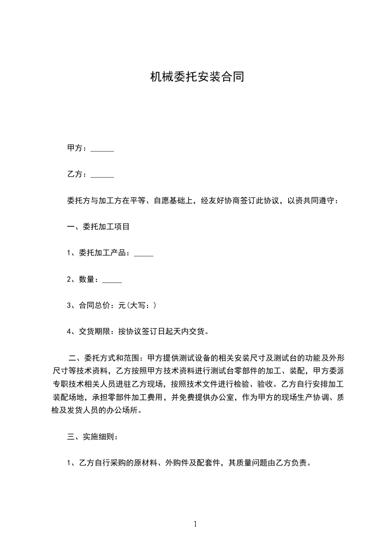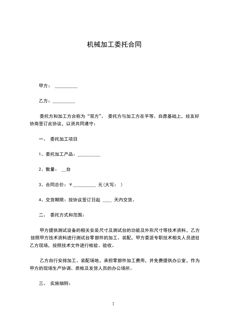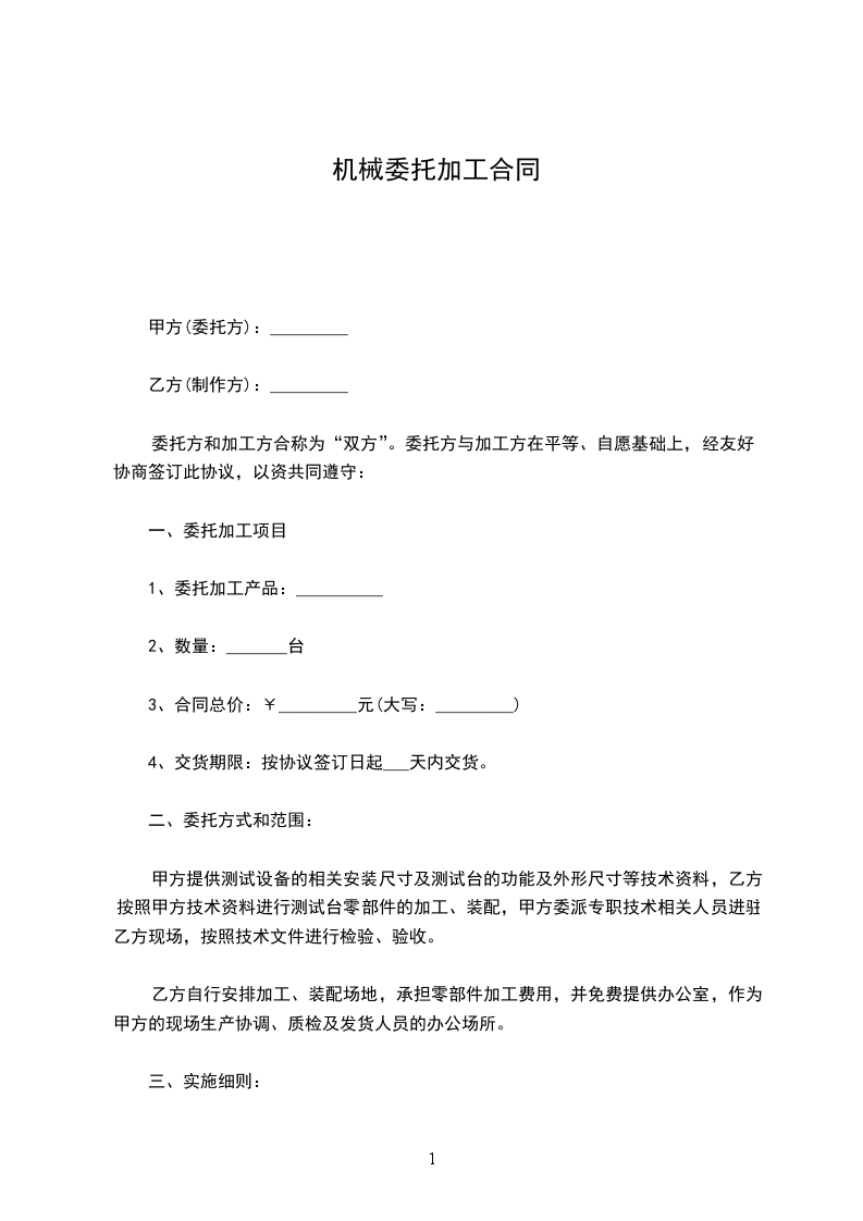 定作方:____________________________________地址:_____________________邮码:____________电话:____________________法定代表人:____________职务:____________定作方委托承揽方加工____________,经双方充分协商,特订立本合同,以便共同遵守。