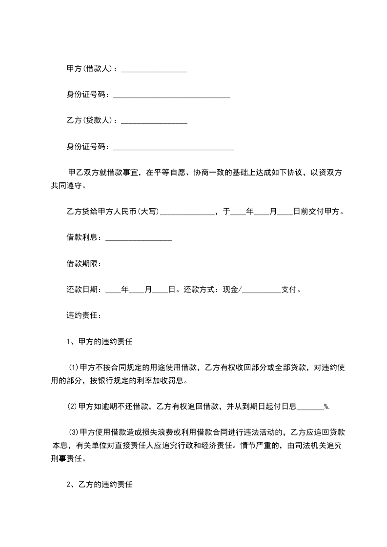 乙方贷给甲方人民币(大写)______________,于____年____月____日前交付甲方。