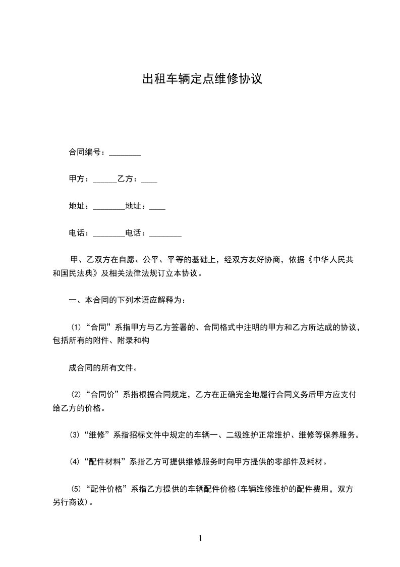 (5)“配件价格”系指乙方提供的车辆配件价格(车辆维修维护的配件费用,双方另行商议)。