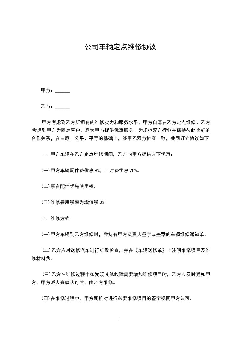 三、甲方车辆在乙方定点维修期间,乙方向甲方提供以下优惠: