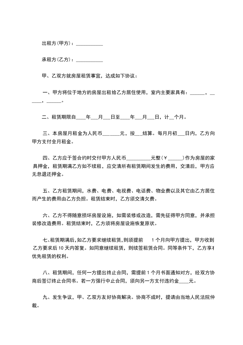(注:本租房合同一式二份,甲、乙双方各执一份)