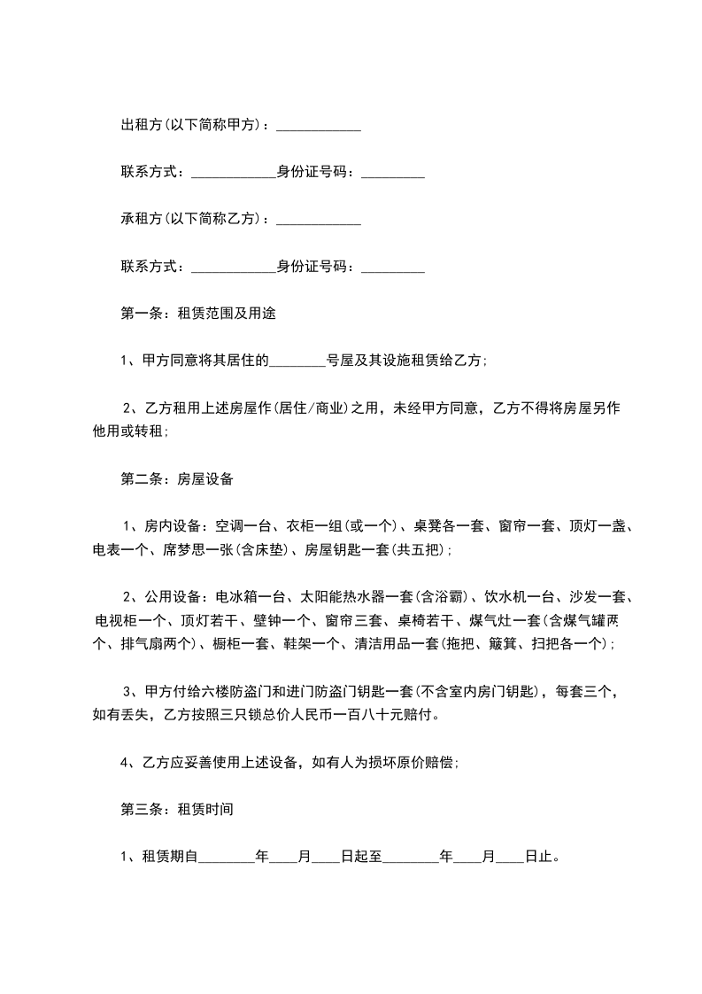 3、确定房内物品、设备无损坏、丢失后,甲方退还乙方全额押金;