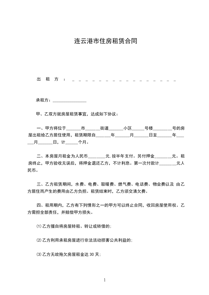 1、甲方同意将其居住的________号屋及其设施租赁给乙方;