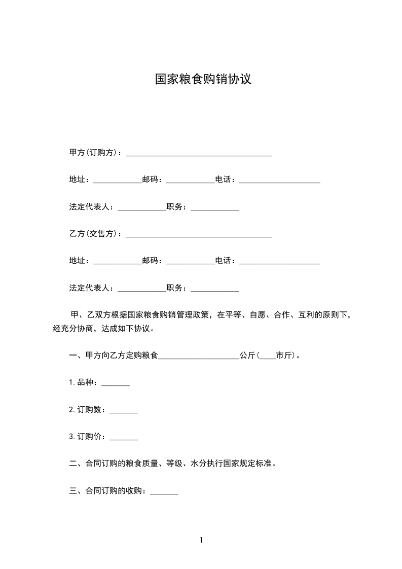 甲、乙双方根据国家粮食购销管理政策,在平等、自愿、合作、互利的原则下,经充分协商,达成如下协议。