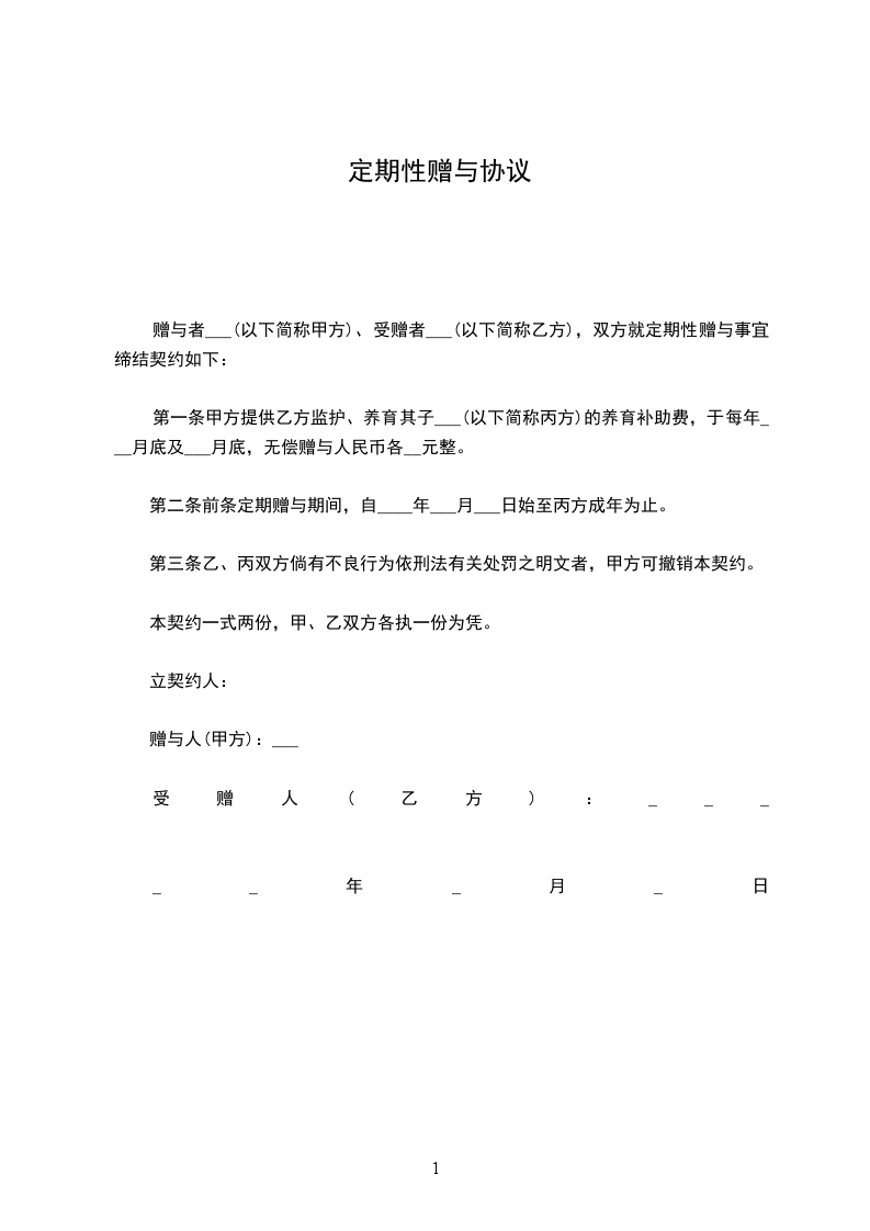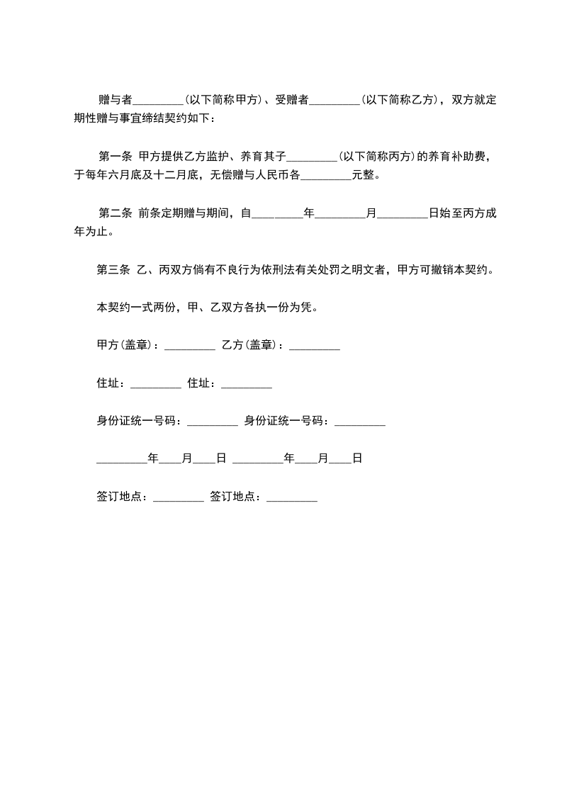 甲方自愿向乙方定期提供_____,并与乙方达成以下赠与协议。