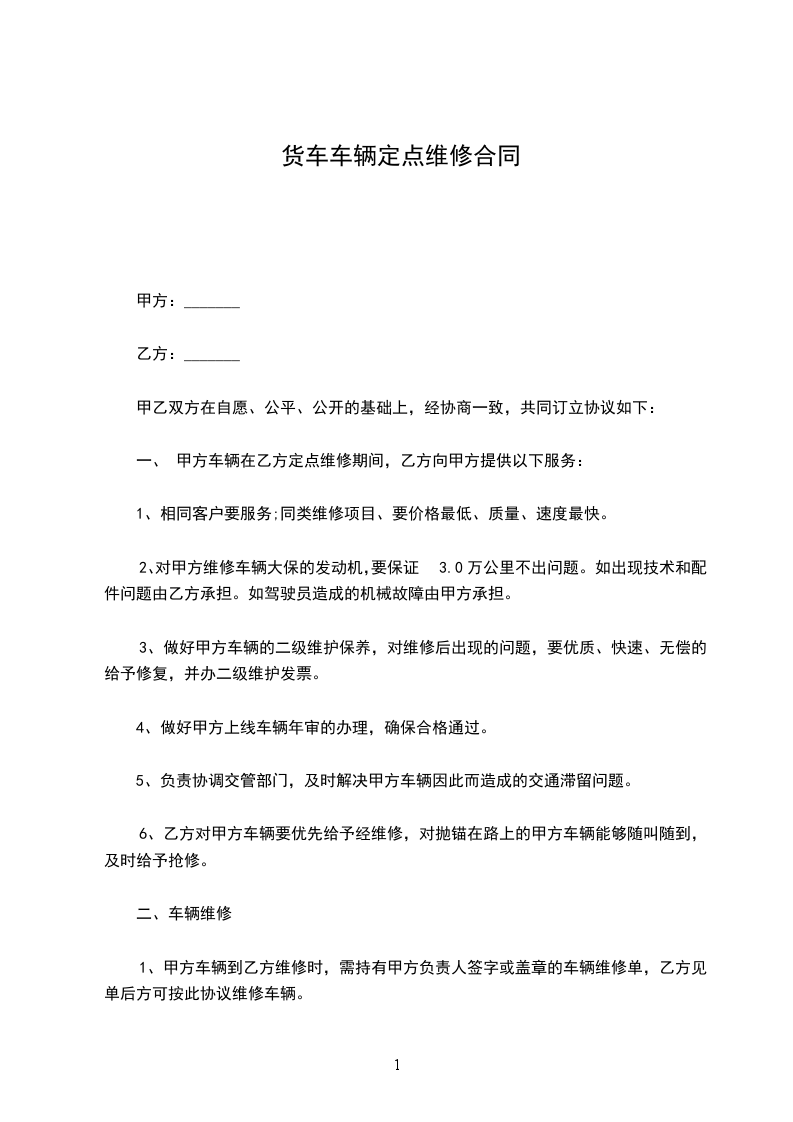 甲乙双方本着互惠互利的原则,经友好协商,就乙方车辆在甲方做定点维修保养事宜达成如下协议:
