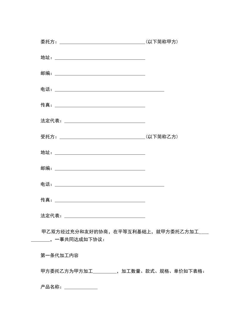甲乙双方经过充分和友好的协商,在平等互利基础上,就甲方委托乙方加工____________,一事共同达成如下协议: