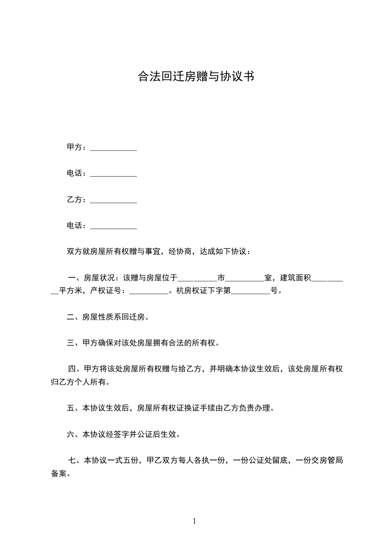 四、甲方将该处房屋所有权赠与给乙方,并明确本协议生效后,该处房屋所有权归乙方个人所有。
